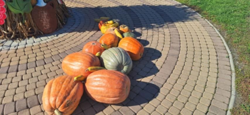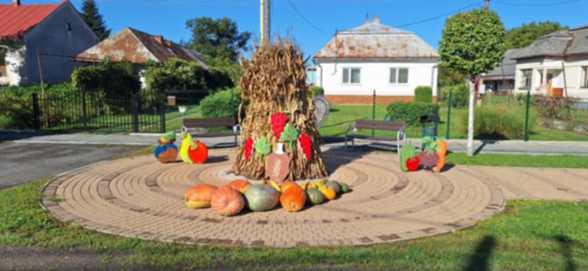 Jesenná výzdoba na námestíčku obce